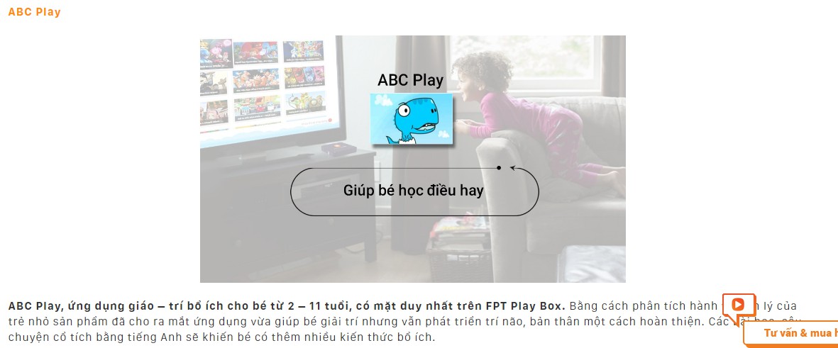 Nếu gia đình có con nhỏ thì ABC Play là lựa chọn phù hợp (Ứng dụng giáo dục bổ ích cho bé từ 2 – 11 tuổi, độc quyền trên FPT Play Box).