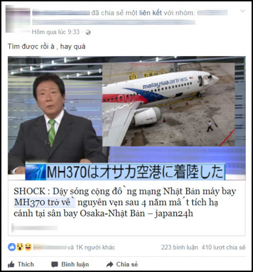Máy bay MH370 trở về nguyên vẹn sau 4 năm mất tích là bài viết lan truyền gây sốt trên các trang mạng xã hội Việt Nam nhưng đằng sau bản tin đó là sự thật khó tin được.