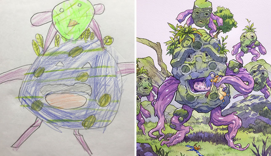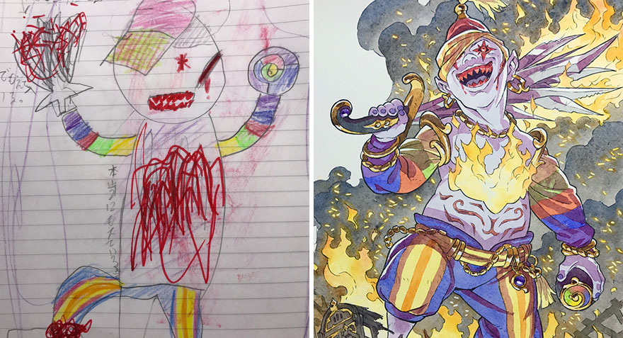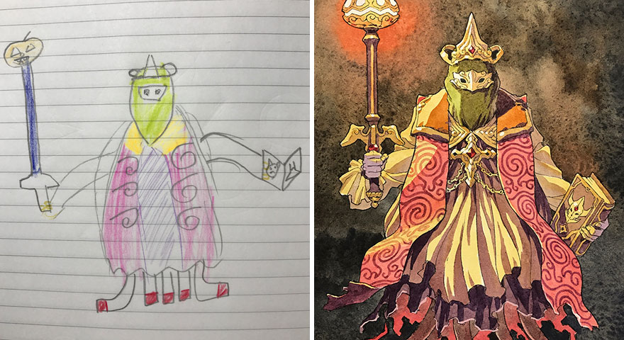 Ông bố vẽ lại những bức vẽ nguệch ngoạc của trẻ con theo phong cách anime với bàn tay tài hoa trở nên tuyệt vời, vô cùng sáng tạo, nhìn mãi không chán.