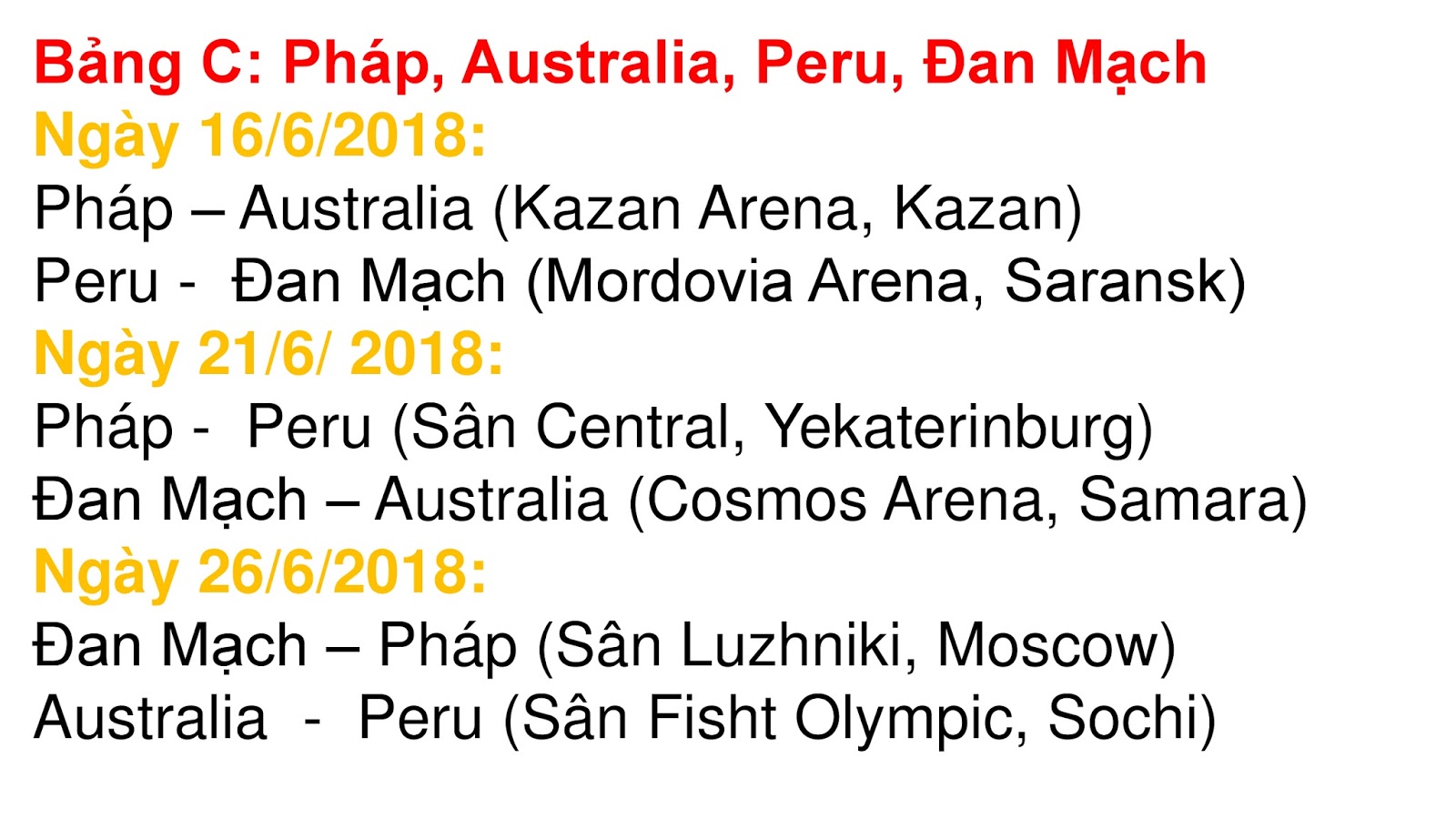 | Lịch thi đấu VCK World Cup 2018 chính xác nhất |