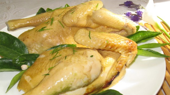 Món ngon từ gà như gà nướng chao, gà nấu cháo, gà hấp rượu, gà luộc… Cách luộc gà không cần nước luộc gà bằng muối làm cho thịt gà ngon, ngọt hơn với vị thơm ngon của gà hòa quyện vị mằn mặn của muối, hương thơm thoang thoảng của lá chanh, sả.