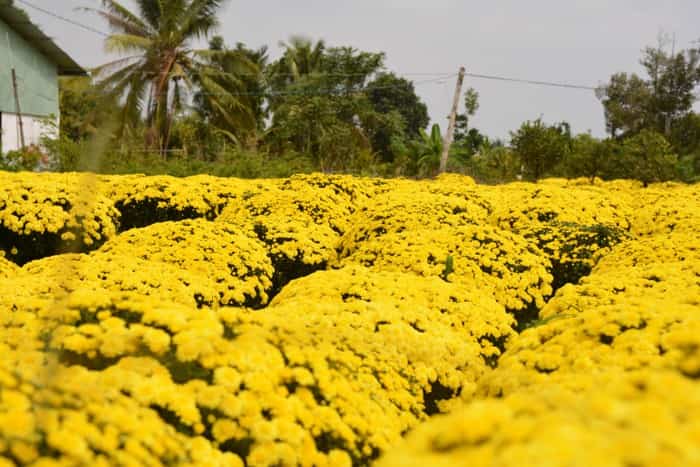 Dọc tuyến Quốc lộ 57 qua địa bàn các xã Hưng Khánh Trung B, Vĩnh Thành, Long Thới, Hòa Nghĩa… của huyện Chợ Lách (tỉnh Bến Tre), đâu đâu cũng bắt gặp cảnh người dân tất bật chăm sóc hoa để chuẩn bị đem ra chợ Tết. Những ruộng được cơi giàn, xếp từng giỏ hoa thẳng tắp bắt đầu khoe sắc.