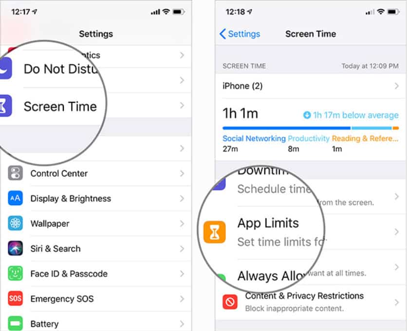 Bước 1. Từ Settings → Screen Time → App Limits.