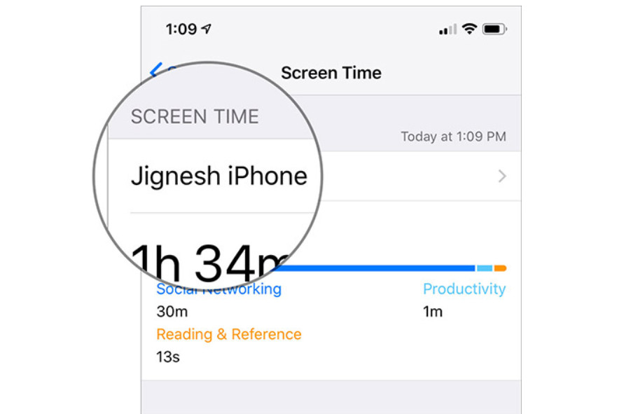 Bước 3. Trong màn hình này, bạn sẽ thấy số liệu thống kê về việc sử dụng các ứng dụng khác nhau cùng với tên iPhone của bạn. Bạn nhấn vào Name of your iPhone.