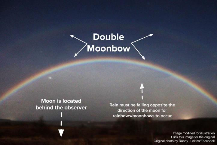 Mặc dù hầu hết các cầu vồng liên quan đến ánh sáng mặt trời xảy ra ngay sau cơn mưa nhưng cũng có một số cầu vồng được tạo ra bởi ánh sáng của mặt trăng.