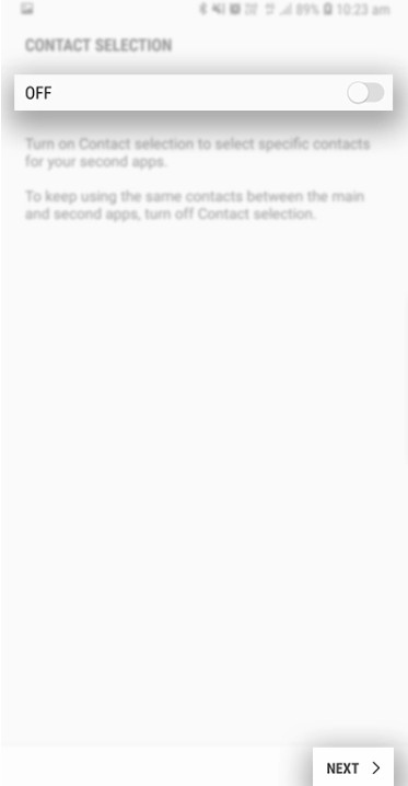 6. Bật Contact selection để chọn các liên hệ cụ thể cho các ứng dụng thứ hai của bạn. Để tiếp tục sử dụng cùng một số liên lạc giữa ứng dụng chính và ứng dụng thứ hai, hãy tắt Contact selection.