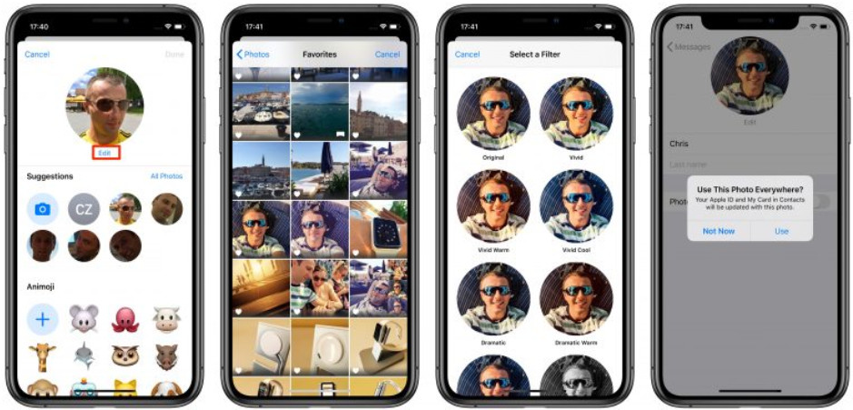 Các ứng dụng nhắn tin của bên thứ ba như Facebook Messenger, Skype, WeChat, WhatsApp, Viber và các ứng dụng khác đã cung cấp hình ảnh hồ sơ tùy chỉnh trong nhiều năm. Với iOS 13, ảnh hồ sơ và tên hiển thị dễ nhận biết hiện có sẵn trong ứng dụng Tin nhắn.