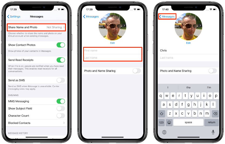 Sử dụng hồ sơ iMessage của bạn, người nhận trò chuyện có thể dễ dàng cập nhật thông tin liên hệ địa phương của họ với ảnh mới và tên/ họ của bạn.