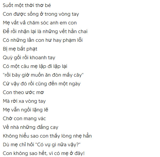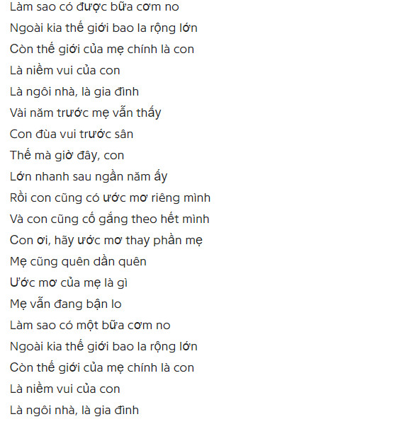 Mẹ cũng đang dần quên ước mơ của mẹ là gì?… Một câu hát về mẹ tuy ngắn gọn nhưng đong đầy ý nghĩa, trainghiemhay.com chia sẻ lời bát hát Mẹ cũng đang dần quên ước mơ của mẹ.