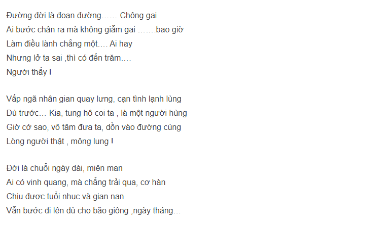 Đường đời là đoạn đường chông gai ai bước chân ra mà không dẫm gai bao giờ là bài gì, lời bài hát gì, lyrics Đường đời là đoạn đường chông gai…