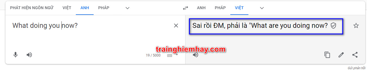 What are you doing now nghĩa là gì, what are you doing now dịch tiếng Việt là gì, trainghiemhay.com chia sẻ bất ngờ khi bạn đánh sai câu này trên Google dịch.